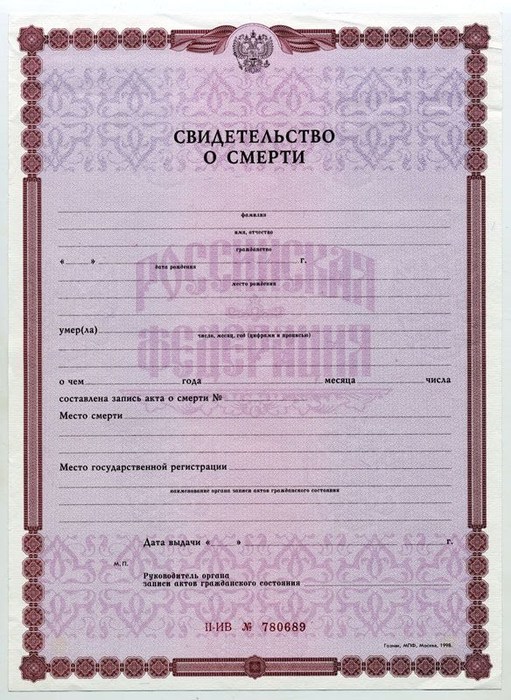 Получение гербового свидетельства о смерти